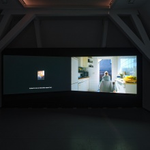 Darina Iyudina’s Sumuyu Soms (2022) – missing sometimes – transports viewers to her parents’ household in the Dutch municipality of Weert, where Darina first moved with her mother as a seven-year-old. In March 2022, the artist’s aunt and cousins would also arrive in the Netherlands, having fled the war in Ukraine. The work muses gently on their adaptation to the new situation – of becoming a joint family.