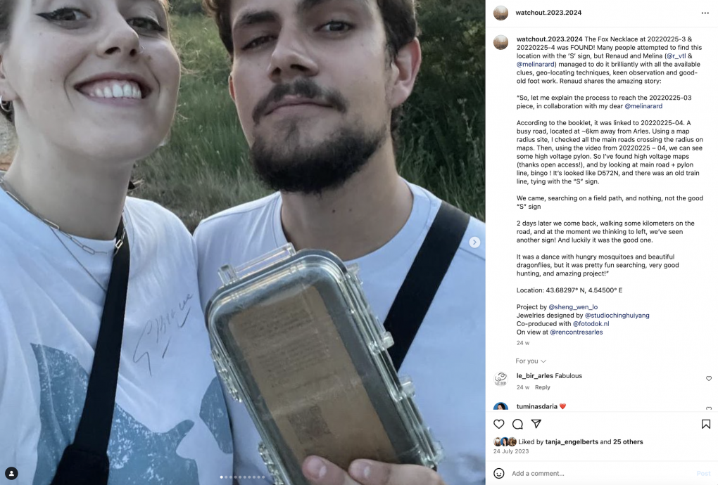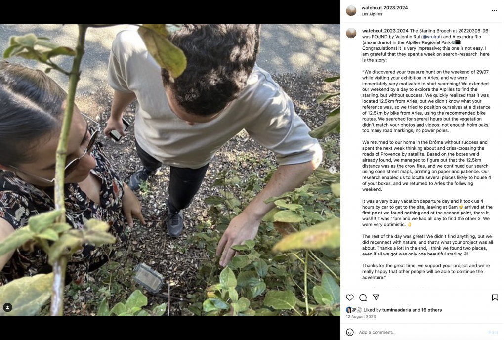 Sheng-Wen Lo leads an Instagram page of the project collecting the stories of people who participated in the treasure hunt and found the treasures.