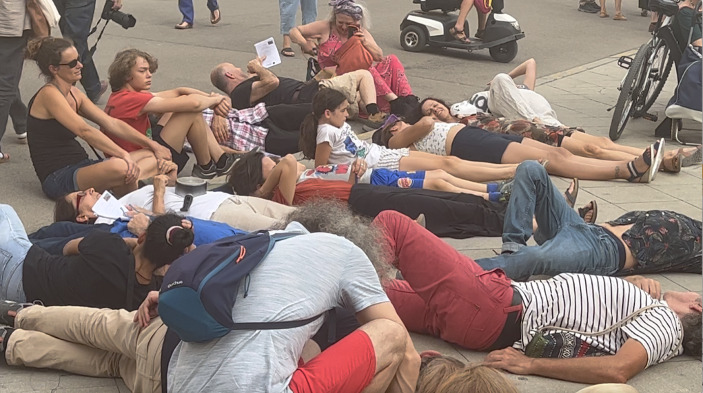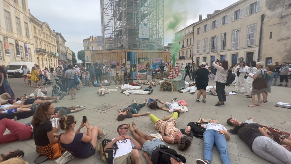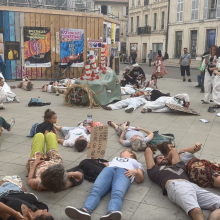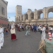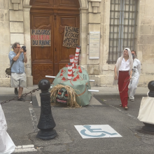 On the 6th of July 2023, Asselin co-organised with Extinction Rebelliona a demonstartion walking from the exhibition space of Monoprix in Arles to the central square of the city.