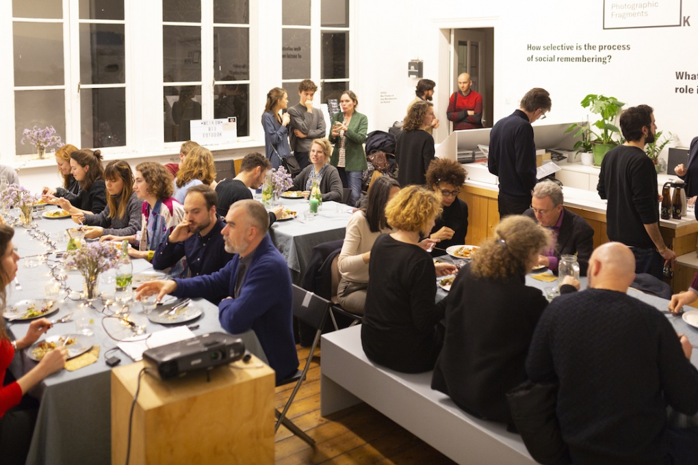 Taferelen will take place at the FOTODOK office between 18.00 and 20.30. We encourage guests to arrive a bit earlier, from 17.30, so we can give you a warm welcome and talk you through the details. We will start with a 30 minute tour through the exhibition at 18.00 hosted by either the curator, director, or tour guide of FOTODOK. At around 18.30/18.45 everyone is invited to start the dinner. The guest speakers are served first so that they have time to eat before the presentations begin. Often, the artist or image-maker is the first person to present.