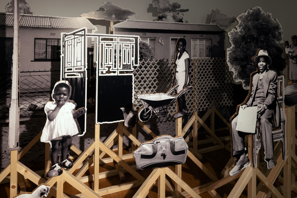 The work of Lebohang Kganye is focused on exploring her family history, contextualised by the wider history of South Africa from before, during, and in the aftermath of apartheid and colonialism. Her projects are informed by oral narratives, family archives, images sourced from vernacular albums, but also by her clan’s names. Kganye collects her relatives’ tales along with plots from South African literature, which she translates into theatrical scripts and settings, silhouettes and other imagery that give expression to all these personal and collective histories. Lebohang Kganye is interested in the area between memory and fantasy. She uses words and images as constructs to bridge the gaps in (collective) memory in order to decolonize the medium of photography and South Africa's cultural heritage.