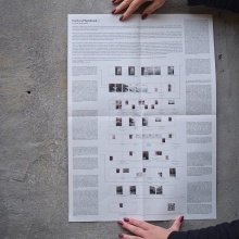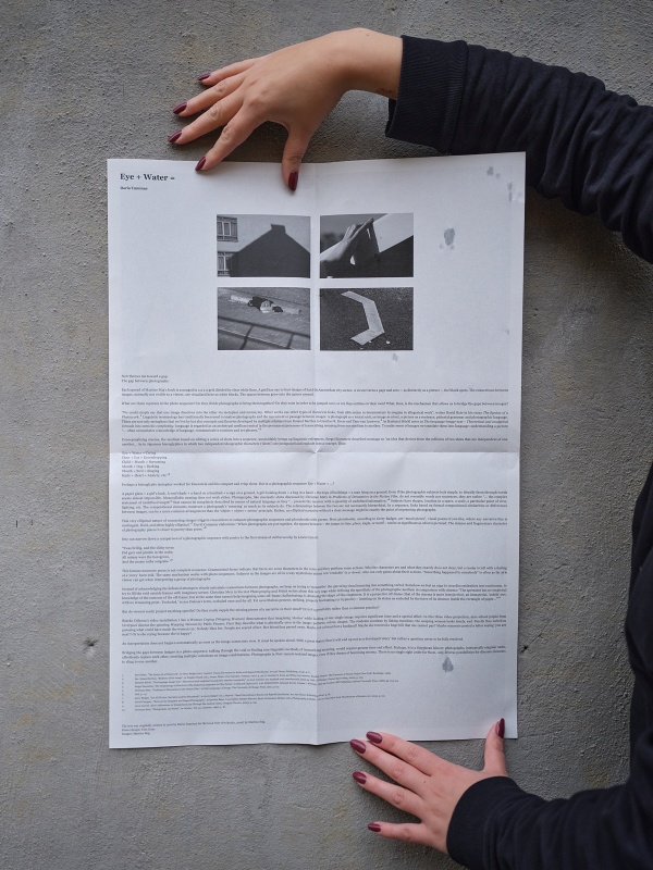 Specifically for the occasion of the show, three take-away posters have been created. Each of them features, besides photography, a text that analyzes one of the exhibited books: Noir by Martine Stig (FW:Books, 2016), Today, too, I experienced something I hope to understand in a few days by Sanne van den Elzen (FW:Books, 2018), and Rocambolesco by Tine Guns (self-published, 2019). All posters are designed by one of the participating artists Tine Guns.