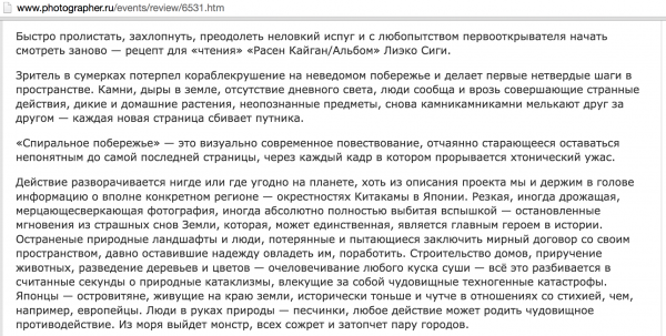 During the work of the exhibition, Gallery of Printing and the online magazine on photography Photographer.ru invited curators, critics, cultural journalists, and photographers to participate in a photobook review writing competition. The best reviews on books presented at the exhibition “Reading a Photobook” were published at Photographer.ru, and the winners got valuable prizes.