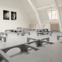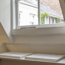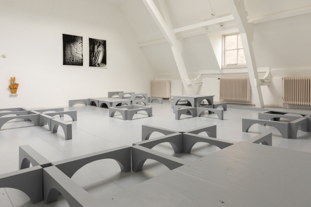 For almost a year, Utrecht-based artist Bart Lunenburg, assigned by FOTODOK, researched archival materials from The Archives of Utrecht to learn more about the multi-layered history of this particular site. The research led to the production of new work This Creaking Floor and All the Ceilings Below, where photography, installation and moving image intertwine into a carefully constructed dramaturgy of the space. Lunenburg’s work relates to material features of an habitable building–furniture, floors, doors, windows, and ceilings. A visitor is guided through a space from the remaining medieval foundations of the building to the top floor that was removed during the latest reconstruction in the seventies.
