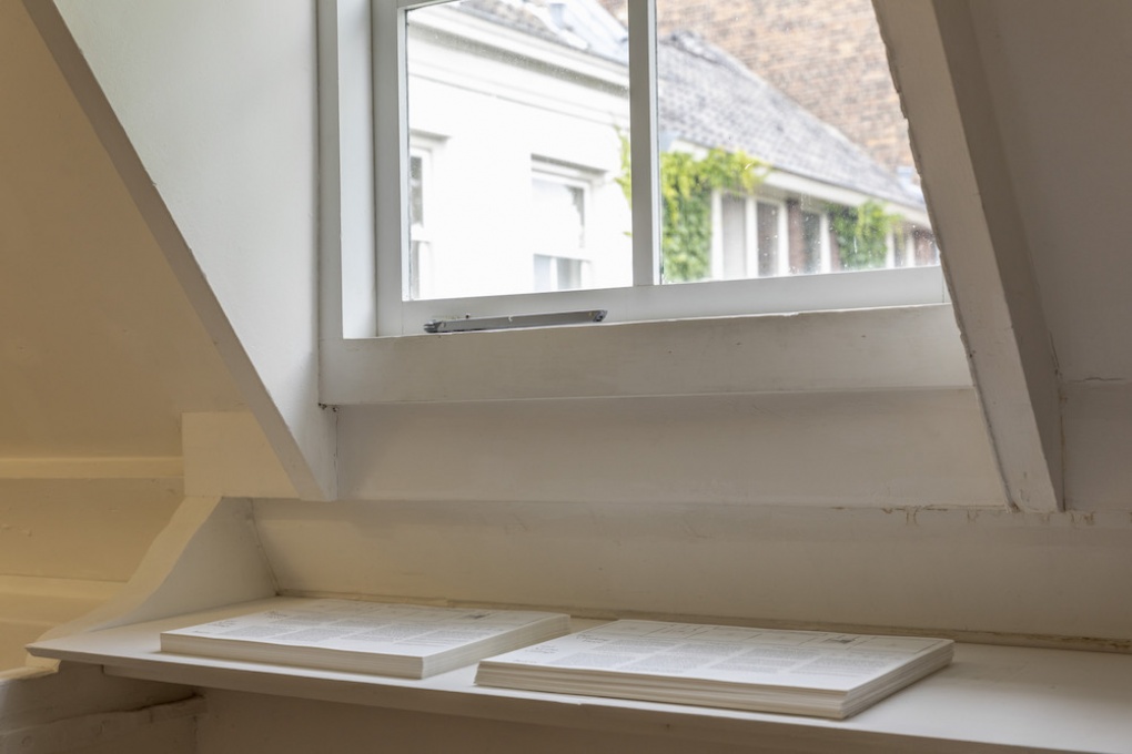 Not limited to the exhibition space upstairs, the entire building becomes activated. Researchers Lieke Hettinga and Deborah Sielert, architect Andreas Müller, artist Christian Nyampeta, and writer Siobhan Wall, among others, share their contributions related to the Abraham Dolehof. Works and materials inspired by the area and the building of Lange Nieuwstraat 7 are brought together and staged to consider what a place offers us, how we are preserving, maintaining, and nourishing our resources, and how to cultivate the “we” of this location.