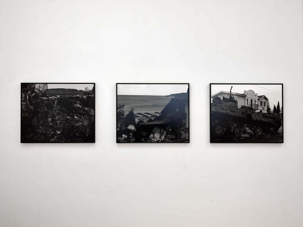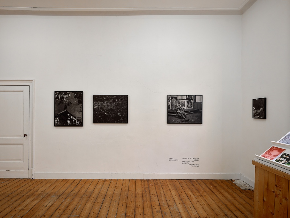 For her monumental series, Radiations of War (2022), Yana Kononova researches the territories subjected to Russian missile terror, that have been occupied by invading troops, or where other hostilities have occurred. The work reflects the intimate process of facing and enduring pain, whilst presenting simultaneously a meticulous documentation of Russian war crimes and their aftermath. Radiations of War unapologetically shows the lethal energy of the war, providing important context for the exhibition.