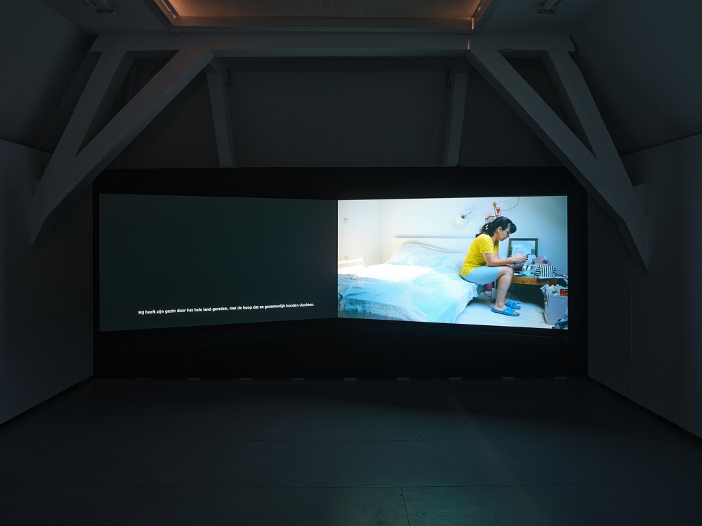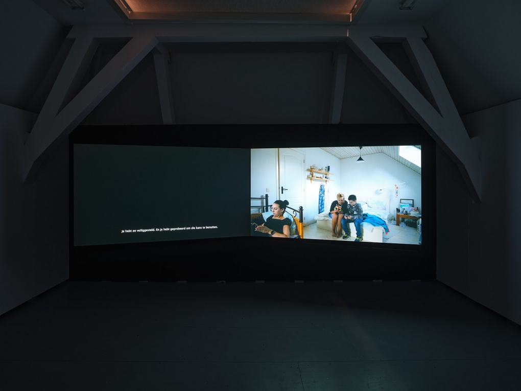 Darina IyudinaSumuyu Soms (2022) – missing sometimes – transports viewers to her parents’ household in the Dutch municipality of Weert, where Darina first moved with her mother as a seven-year-old. In March 2022, the artists aunt and cousins would also arrive in the Netherlands, having fled the war in Ukraine. The work muses gently on their adaptation to the new situation – of becoming a joint family.